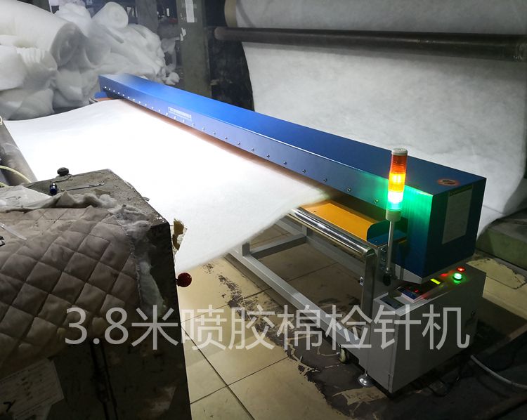 東莞中某仿絲棉是一家集團型港資企業(yè)下屬噴膠棉專業(yè)生產(chǎn)企業(yè)。最近淘汰了一臺早期的3.8米寬幅驗針機,經(jīng)過對比選購我公司一臺新款3.8米寬幅龍門式檢針機用于檢測管控其噴膠棉生產(chǎn)線。經(jīng)過一個多月的使用,機器驗收合格,完全達到客戶預(yù)期要求。