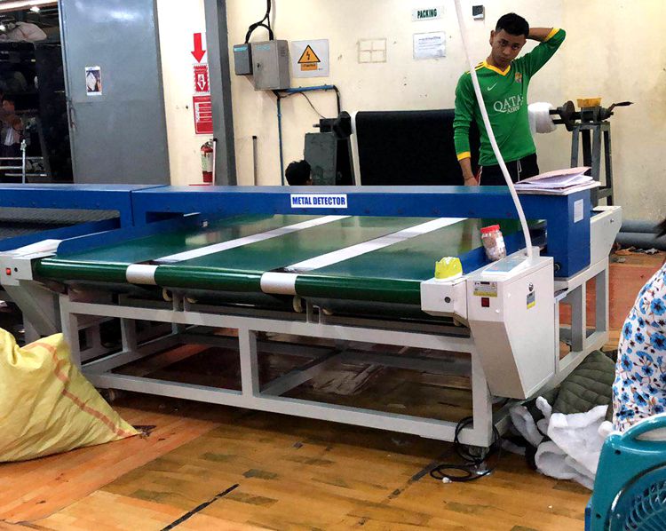 緬甸客戶專業(yè)生產(chǎn)羽絨服被,先后采購我公司定制生產(chǎn)的1.8米寬幅檢針機用于檢測其羽絨服被裁片的金屬異物。