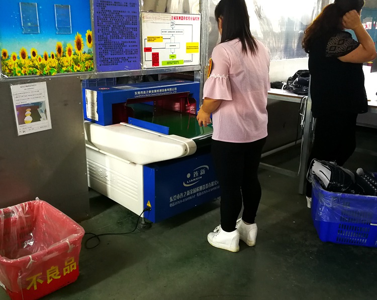 隨著競爭越來越厲害。工廠都要打起精神來仔細應(yīng)對客戶要求。金屬利器管控是最后也是最重要的一個環(huán)節(jié)。連之新流水線上檢針機為企業(yè)提供了金屬利器管控檢針檢測保障。不會額外占用通道,只需要將檢針機放到流水線上即可在線進行檢針作業(yè)。案例為厚街溪頭某誠鞋廠使用現(xiàn)場。