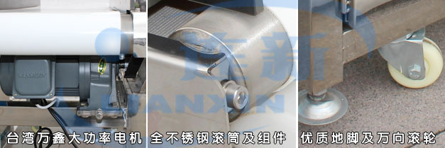 ■ 整機(jī)機(jī)架采用足3厘鏡面不銹鋼材料,傳送帶采用食品級(jí)白色PVC或PU皮帶,采用激光切割焊接技術(shù),日本品牌軸承及6厘厚無縫鋼管滾筒,采用日本三星同步帶及同步輪制作,德資JSCC品牌電機(jī);