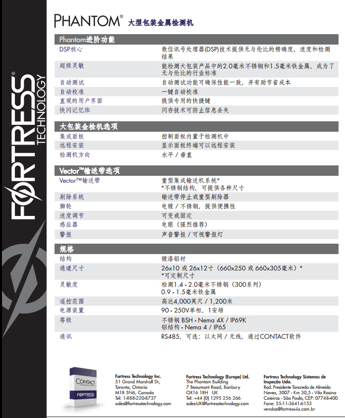產(chǎn)品名稱:進口金檢機金屬檢測機 堡壘FORTRESS
