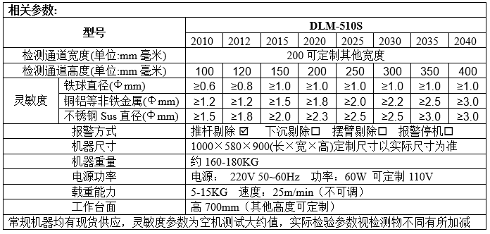 產(chǎn)品名稱:DLM-510S觸屏式全金屬探測機200系列是一款數(shù)字式金屬檢測機,用于檢測非金屬材質(zhì)瓶裝產(chǎn)品中常見的金屬異物,采用歐美及食品標(biāo)準(zhǔn)設(shè)計,整機設(shè)計符合食品機械要求,適合連接流水線檢測作業(yè)。