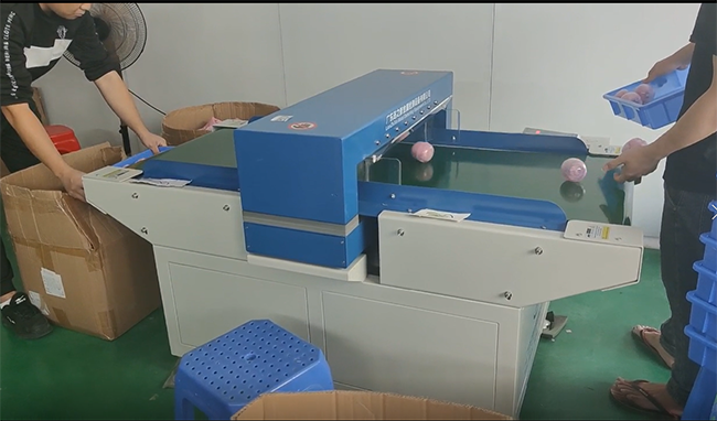 日本訂單兒童玩具手袋過檢針機(jī)現(xiàn)場(chǎng):